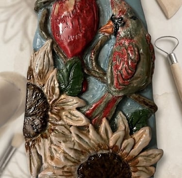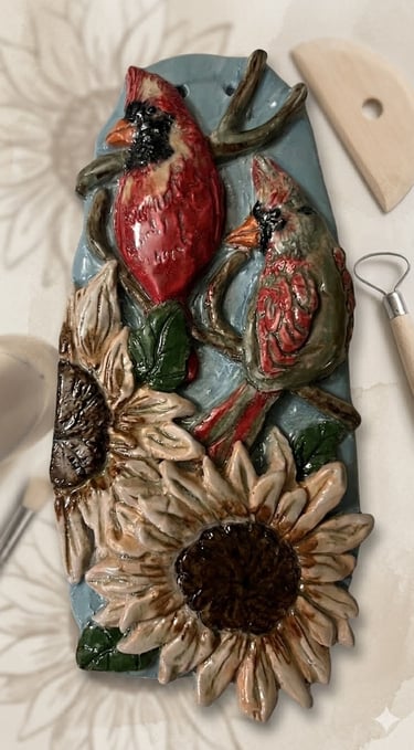 A symbol of devotion and connection across the miles, this sculpture was created as a tribute to family ties in Indiana, featuring the vibrant State Bird - the Cardinal.
