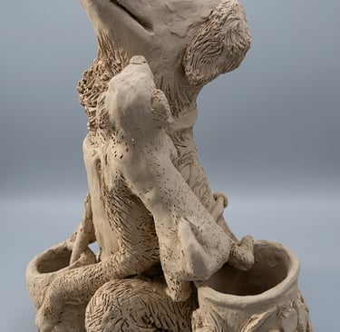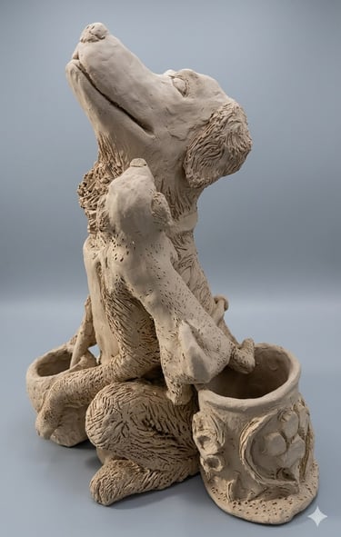 From Earth to Art: The hand-sculpted clay base of the totem pole in progress.