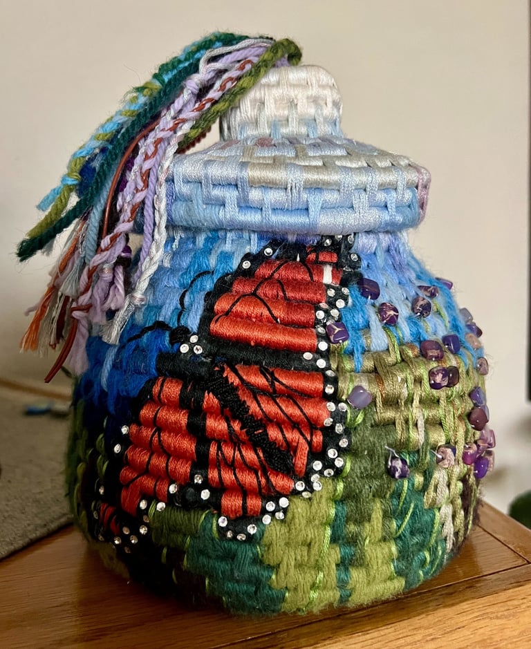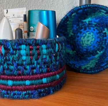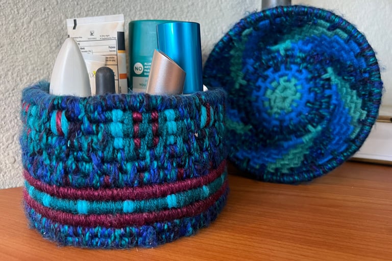 A meditative journey through fiber and form. These coiled vessels translate the rhythmic steady pulse of the creative process into tactile, three-dimensional objects that celebrate the interplay of color and texture.
